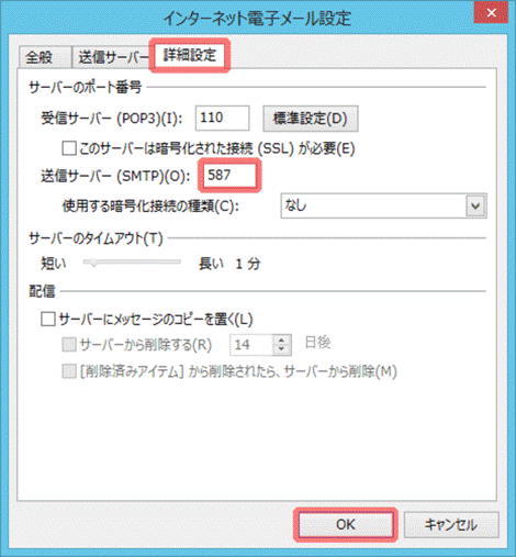6.   「詳細設定」タブをクリックし、以下のように設定します。