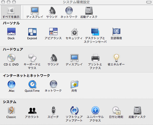 「システム環境設定」内の「ネットワーク」アイコンを開きます。