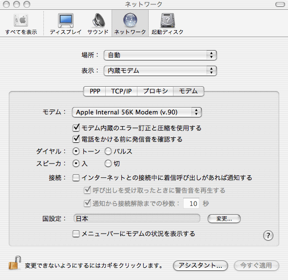 [モデム内蔵のエラー訂正と圧縮を使用する]:チェック