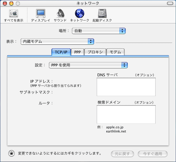 [ネットワーク]ウィンドウの[TCP/IP]タブを設定します。