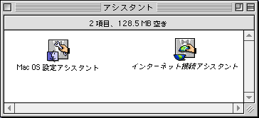 ハードディスクの[アシスタント]フォルダ、または[インターネット]フォルダにある[インターネット接続アシスタント]アイコンをダブルクリックします。