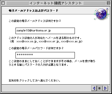 ここでは sample10@kurikoma.or.jp と入力していますがご自分のメールアカウント名と置き換えてください。