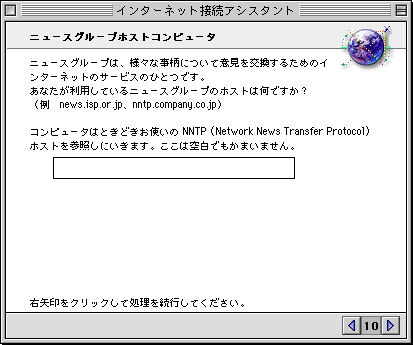 [ニュースグループホストコンピュータ]の画面では、空欄のまま右矢印をクリックします。