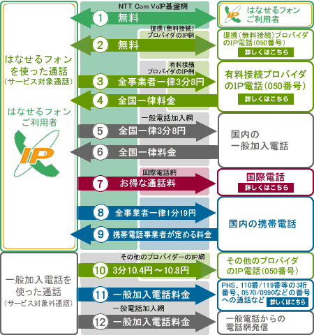 はなせるフォンIP電話サービスから、有料接続プロバイダのIP電話への通話(IP to IP) 3分8.4円