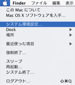 プルダウンメニューの「アップルメニュー」から「システム環境設定...」を選択します。