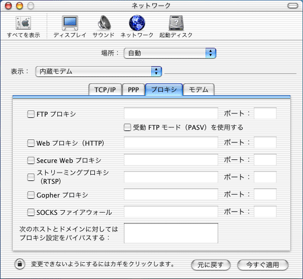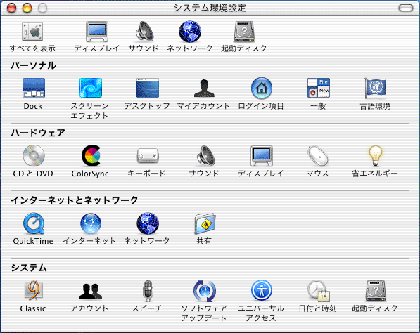 「システム環境設定」内の「ネットワーク」アイコンを開きます。