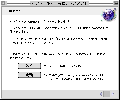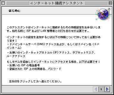 ハードディスクの[アシスタント]フォルダ、または[インターネット]フォルダにある[インターネット接続アシスタント]アイコンをダブルクリックします。