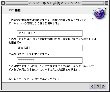 [アクセスポイントの電話番号]:アクセスポイントの電話番号 0570010987 を入力します。