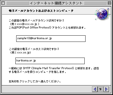 ここでは sample10@kurikoma.or.jp と入力していますがご自分のメールアカウント名と置き換えてください。