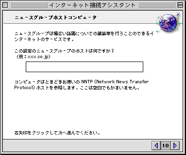 [ニュースグループホストコンピューター]の画面では、空欄のまま右矢印ボタンをクリックします。