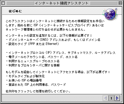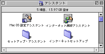 ハードディスクの[アシスタント]フォルダ、または[インターネットフォルダ]にある[インターネット接続アシスタント]をダブルクリックします。