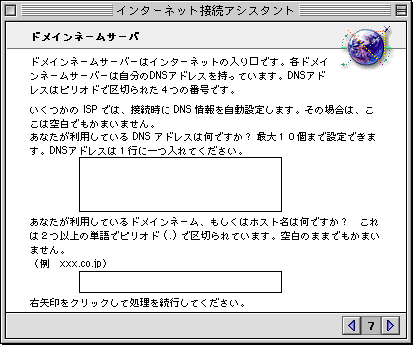 [ドメインネームサーバ]の画面では以下のように空欄のまま、右矢印ボタンをクリックします。