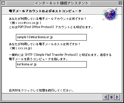 ここでは sample10@kurikoma.or.jp と入力していますがご自分のメールアカウント名と置き換えてください。